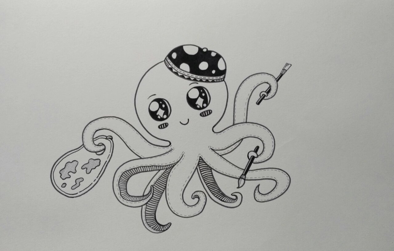 【爱画画的小章鱼】创意画 线描章鱼创意画(临摹版)