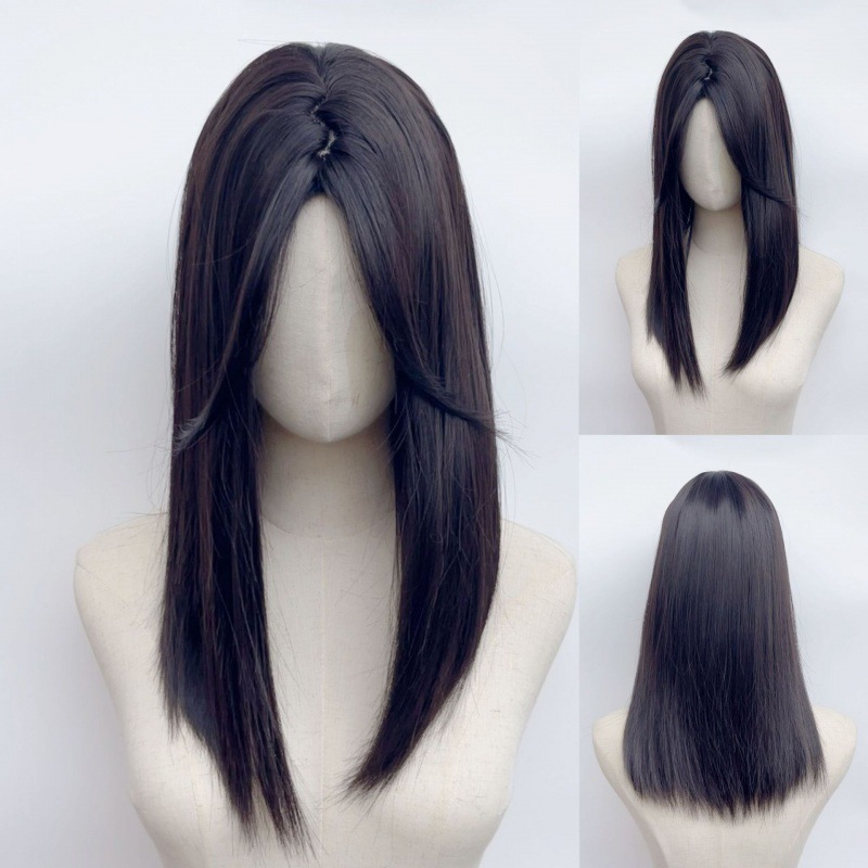 假发女生黑棕色中分刘海长直发气质自然逼真黑长直全头套式-阿里巴巴