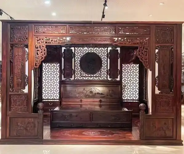 大红酸枝千工拔步床