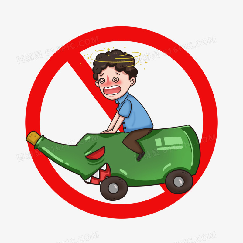 手绘卡通禁止酒驾创意免抠元素