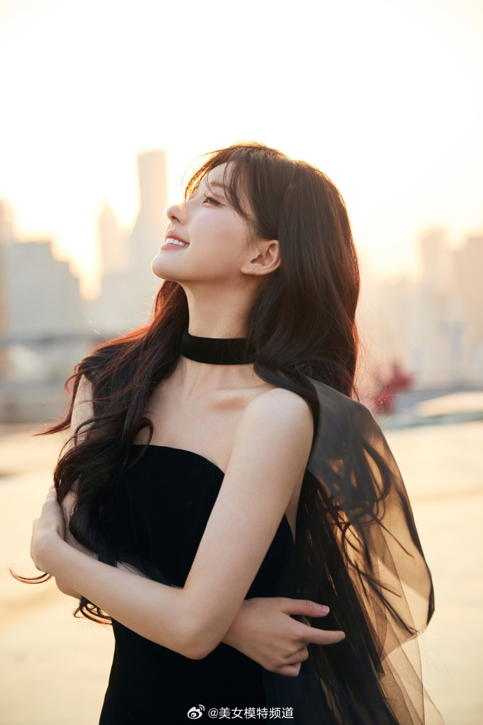 赵露思天台落日剪影大片释出黑纱点缀白皙皮肤侧颜美