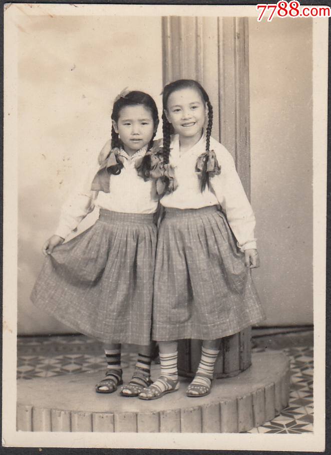 两个小女孩合影-价格:8元-au27690915-老照片 -加价-7788收藏__收藏