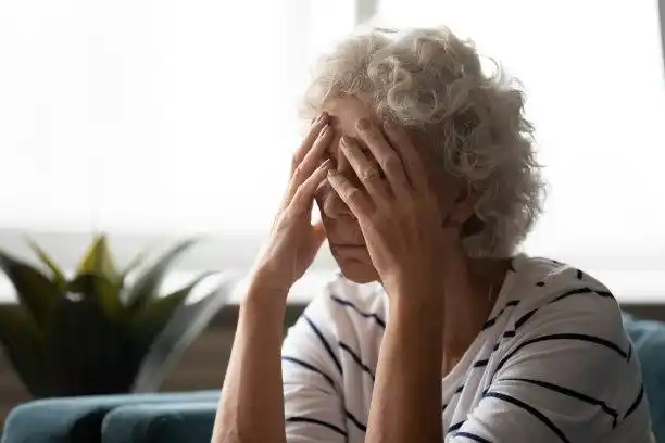 老年妇女捂着自己的脸烦躁恼火烦躁无奈后悔