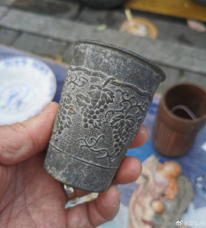晚清锡器葡萄纹直筒形酒杯|锡器|酒杯|筒形_新浪新闻