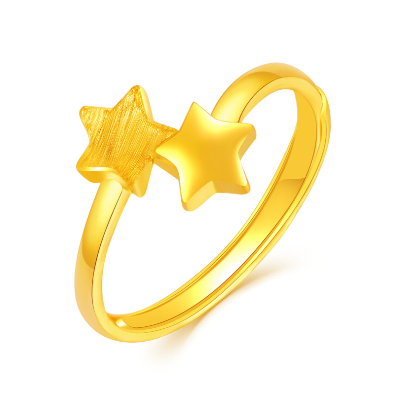 周贝贝珠宝 黄金戒指 闪砂五角星星黄金女士活口戒指 zhjj0004