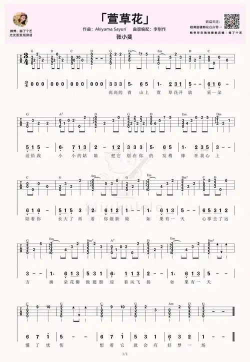 《萱草花》简谱 《萱草花》是由akiyama sayuri作曲,李聪作词张小斐