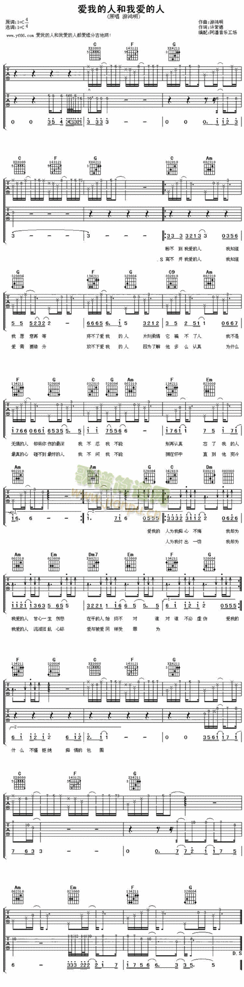 裘海正 爱我的人和我爱的人 g调指法f#调六线吉他谱-虫虫吉他谱免费