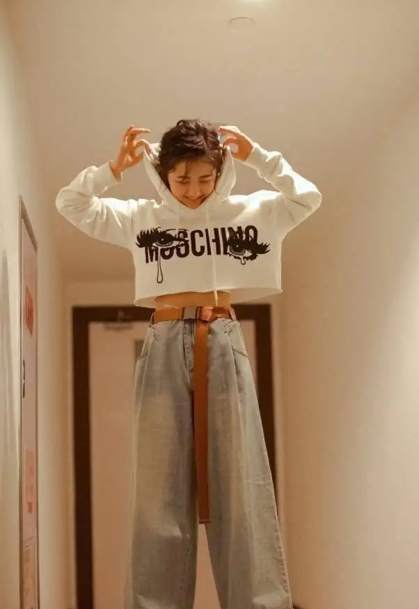 张子枫的年纪没多大,但穿上黑色牛仔衣有点成熟了,还好发型够嫩