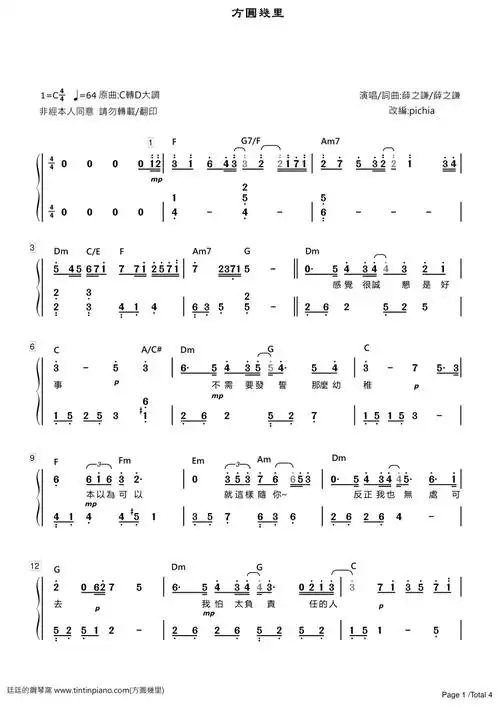 简谱薛之谦jokerxue方圆几里附歌词和弦