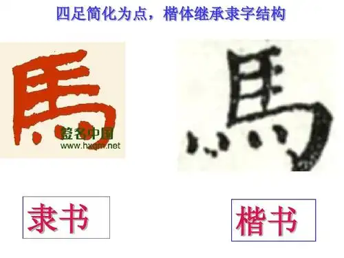 四足简化为点,楷体继承隶字结构 隶书 楷书