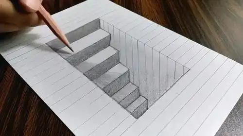 简单好学的素描铅笔画,画一个立体楼梯,太有才啦