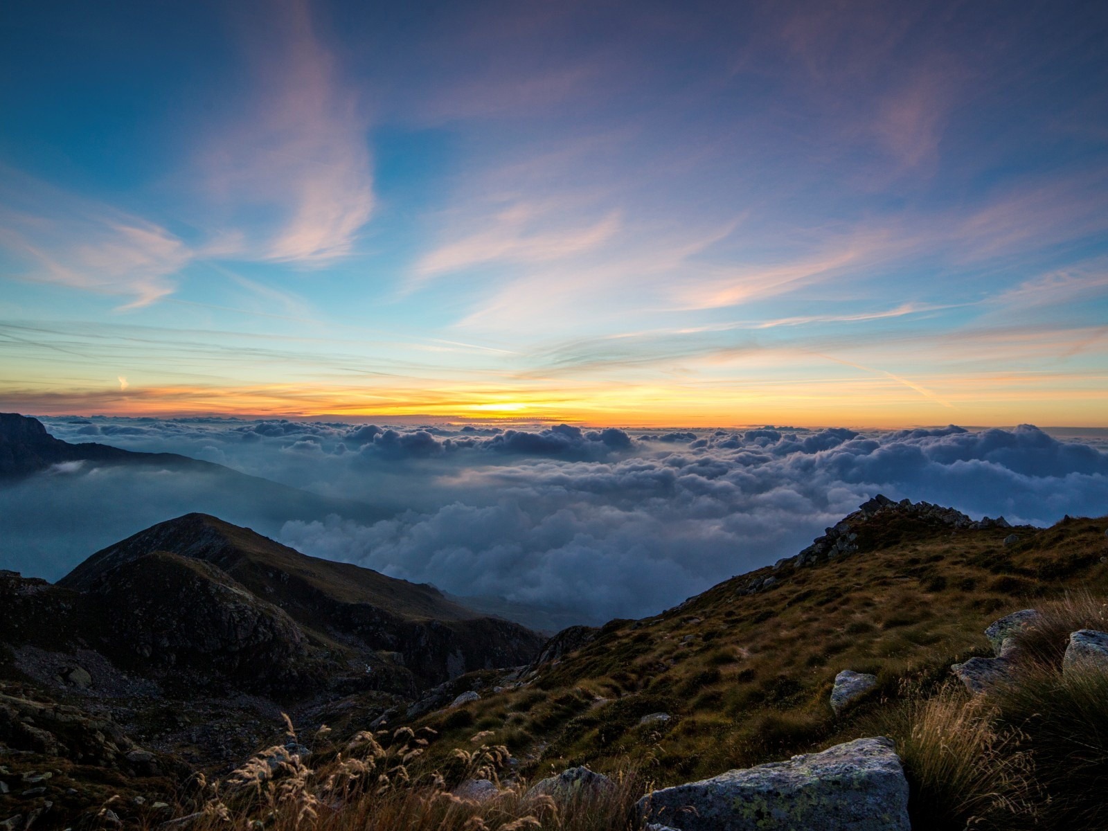 描述: 黎明多云平静的湖面在夕阳-自然风光高清壁纸 当前壁纸尺寸