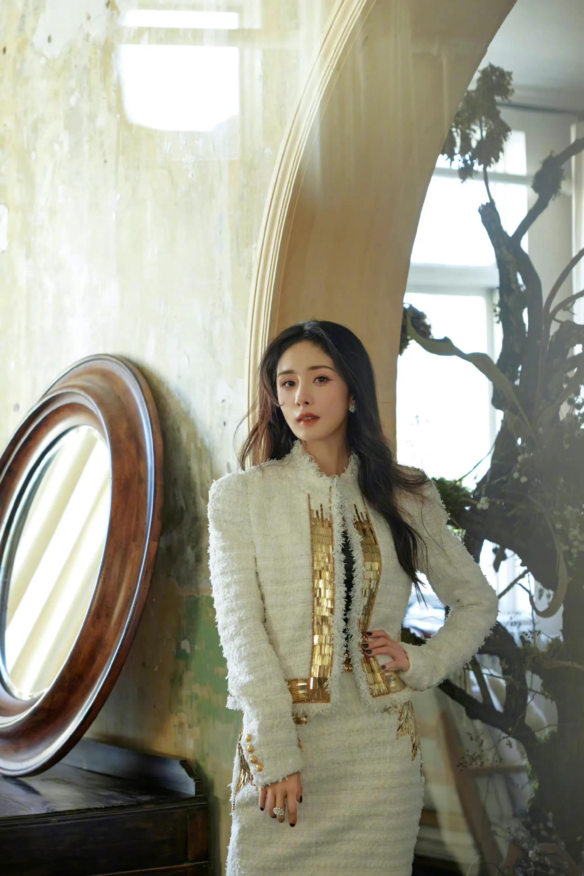 杨幂最新写真大片,身穿白色小香风套装,大秀美腿,优雅迷人|杨幂|套装