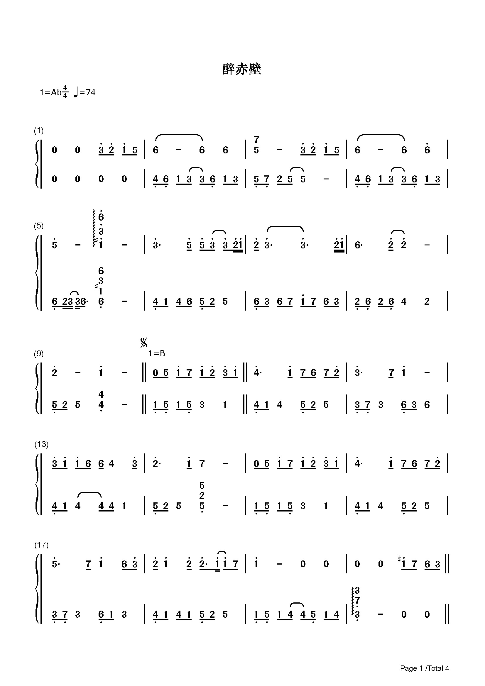 醉赤壁 - 笛萧谱 - 歌谱简谱大全