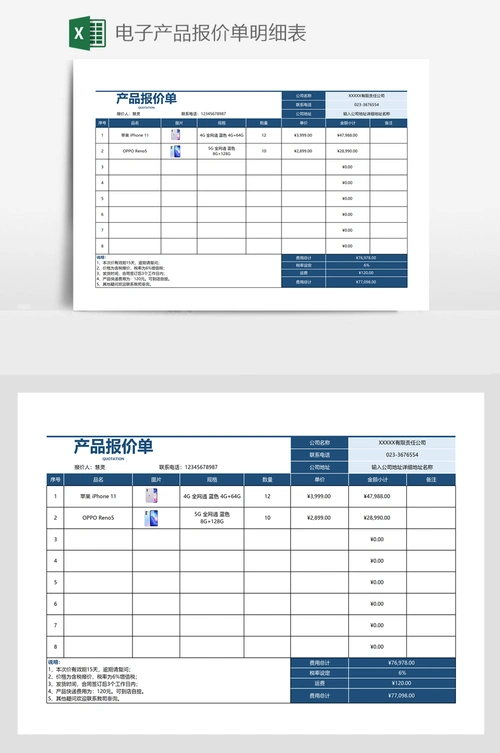 电子产品报价单明细表