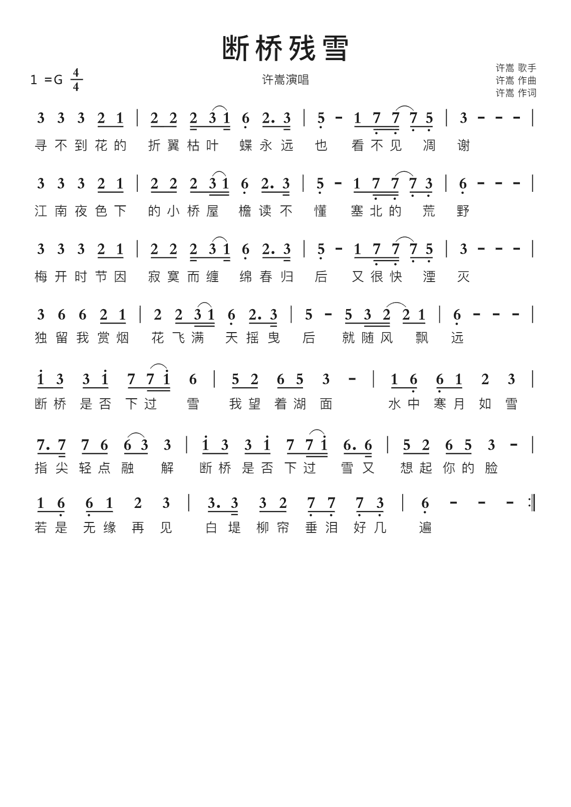断桥残雪的简谱_许嵩断桥残雪简谱下载_断桥残雪的简谱_许嵩断桥残雪