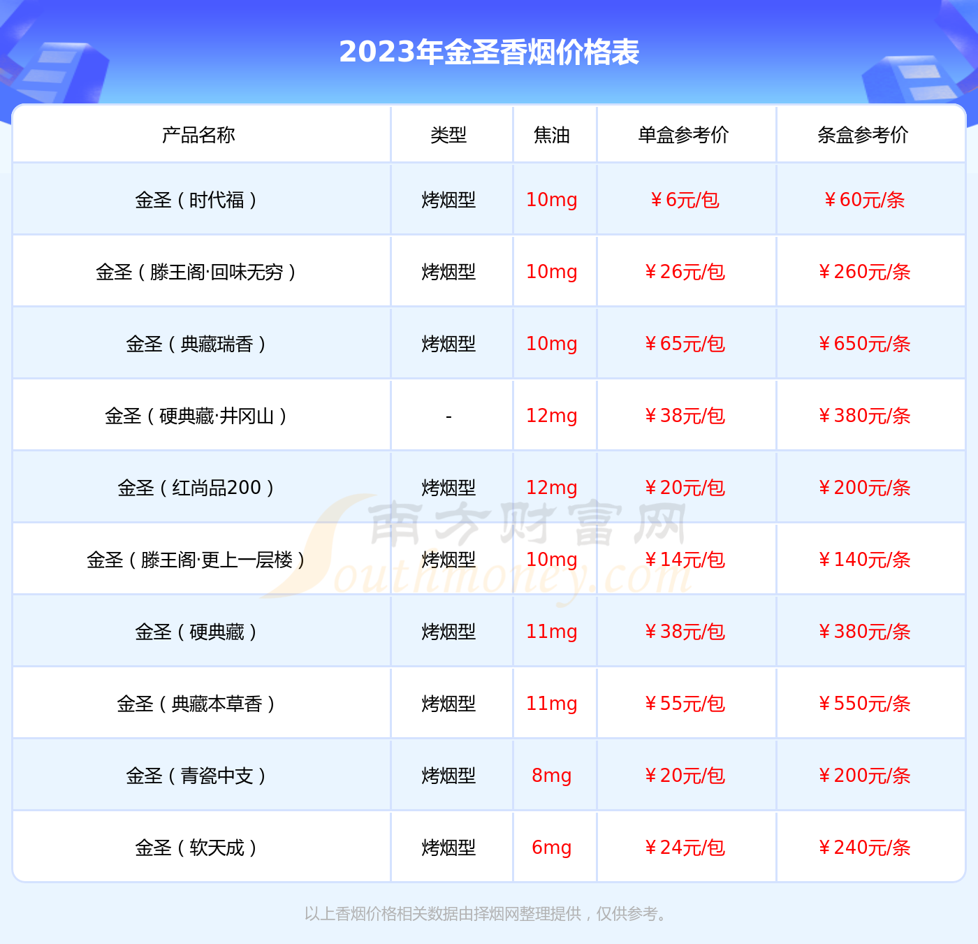 2023年金圣硬红瑞香香烟多少钱一条