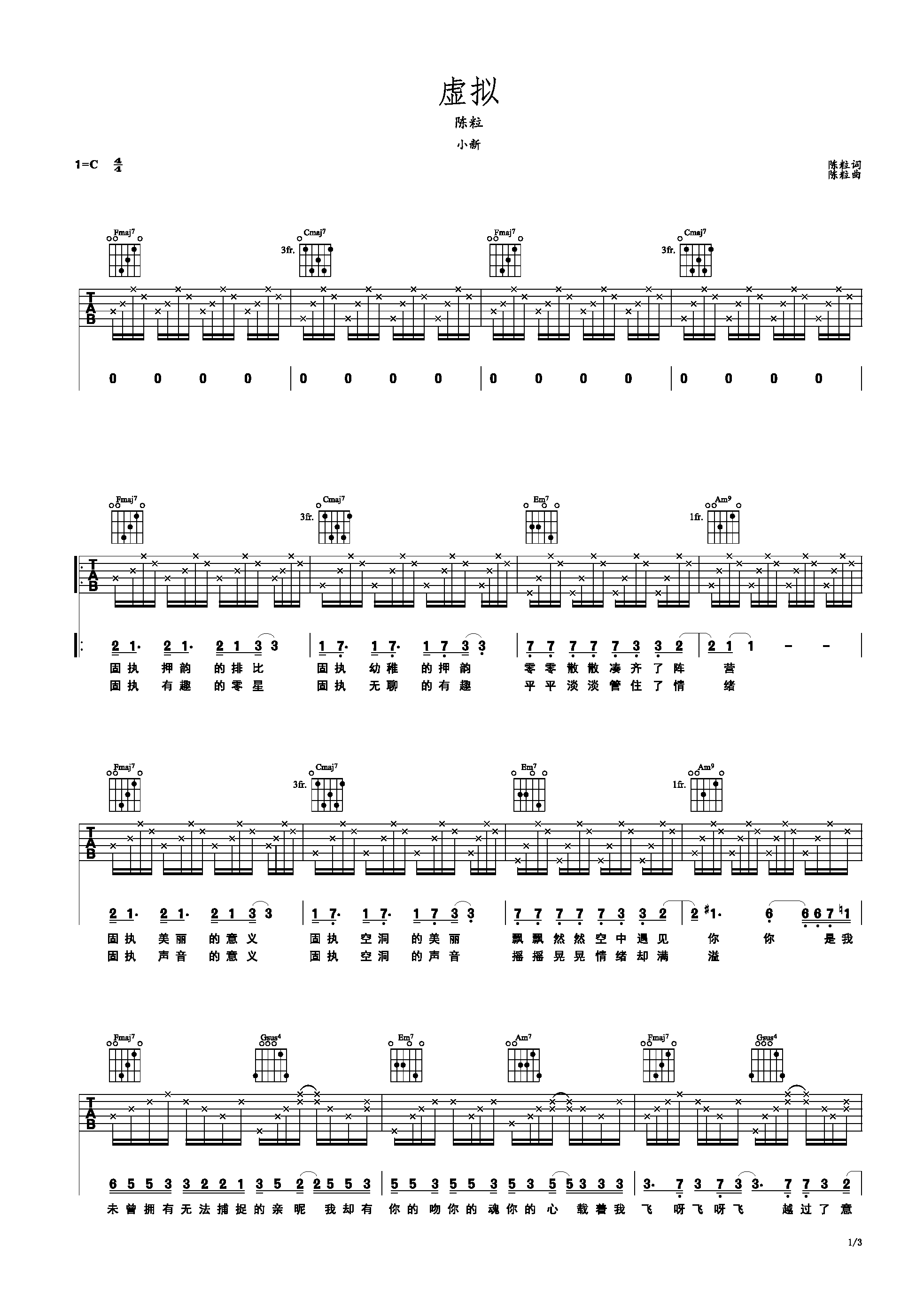 陈粒《虚拟》吉他谱 c调弹唱六线谱2