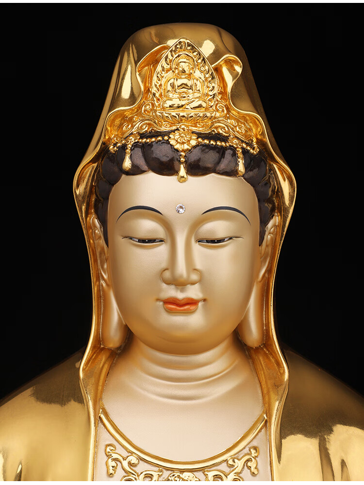 盛凡贴金箔自在南海观音佛像铜像纯铜金身家供禅定彩绘观世音菩萨摆件