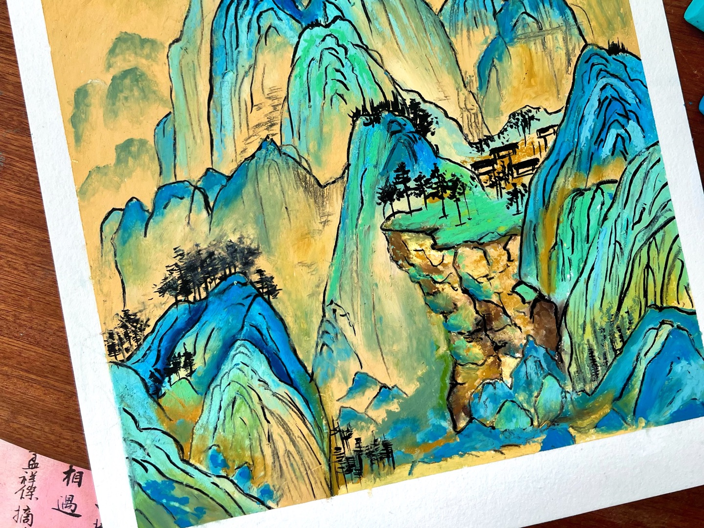 千里江山,只此青绿 #油画 #千里江山 - 抖音