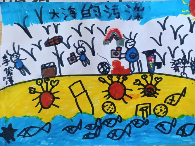 少儿书画作品-海洋污染/儿童书画作品海洋污染欣赏_中国少儿美术教育