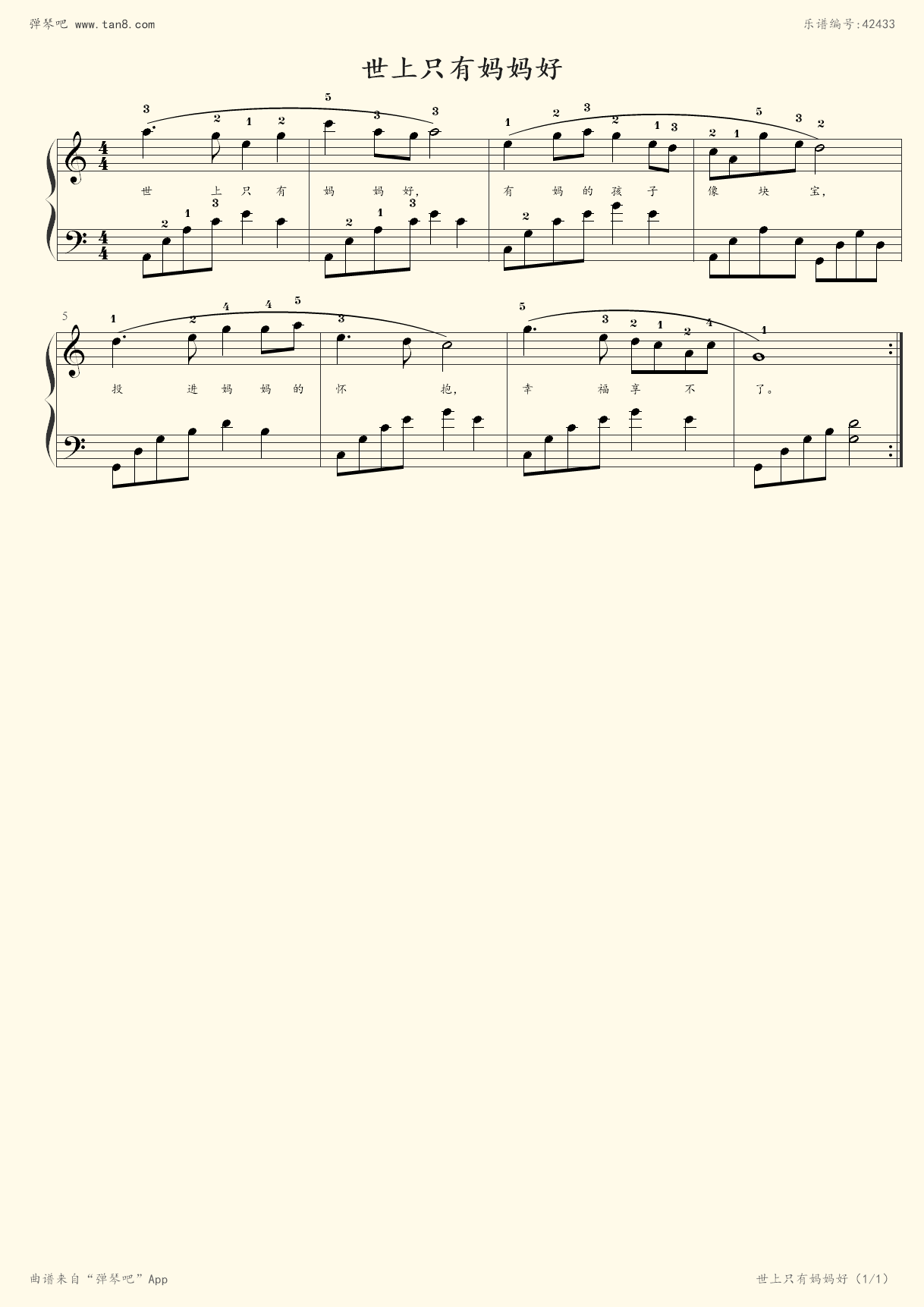 世上只有妈妈好(钢琴启蒙小曲·54)钢琴曲谱(图1)