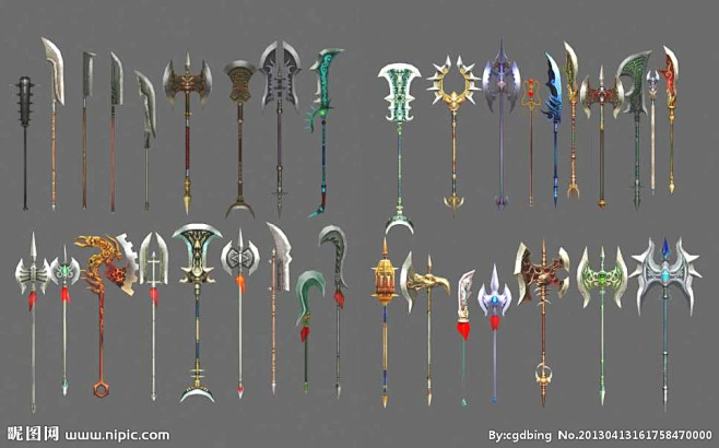 木制和金属长柄法杖武器游戏原画