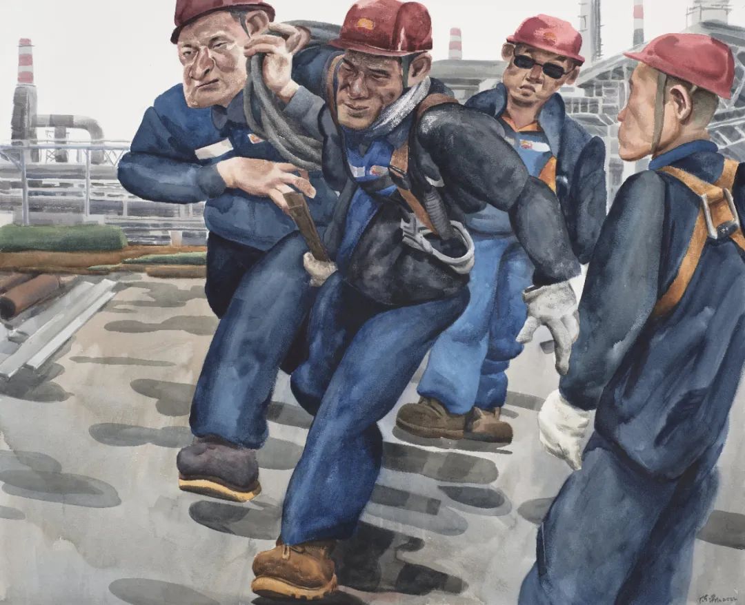 陈森《奋进的石油人》水彩 160cmx150cm