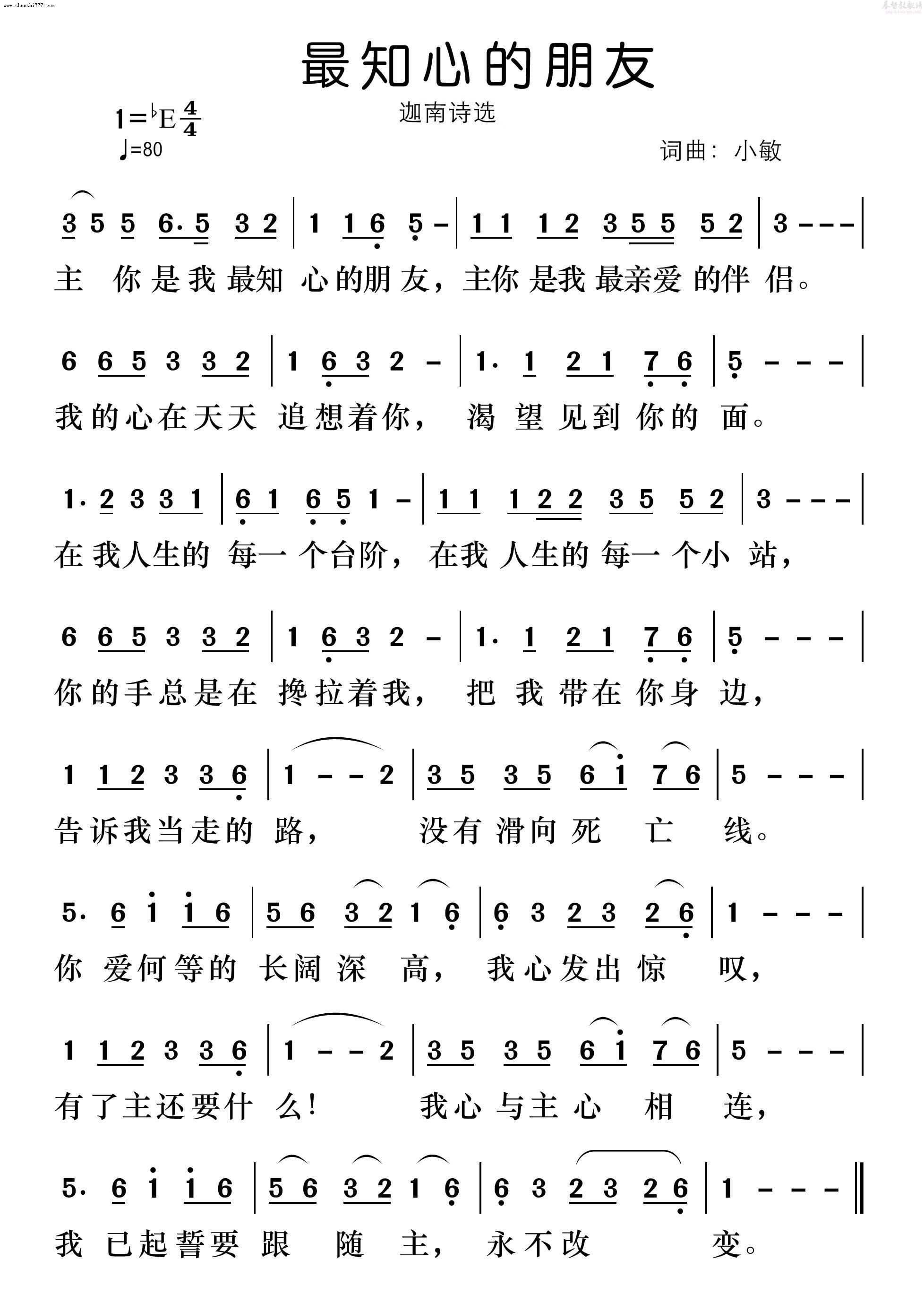 最知心的朋友(简谱)-迦南诗选-基督教歌谱网基督教简谱网歌谱网 诗歌