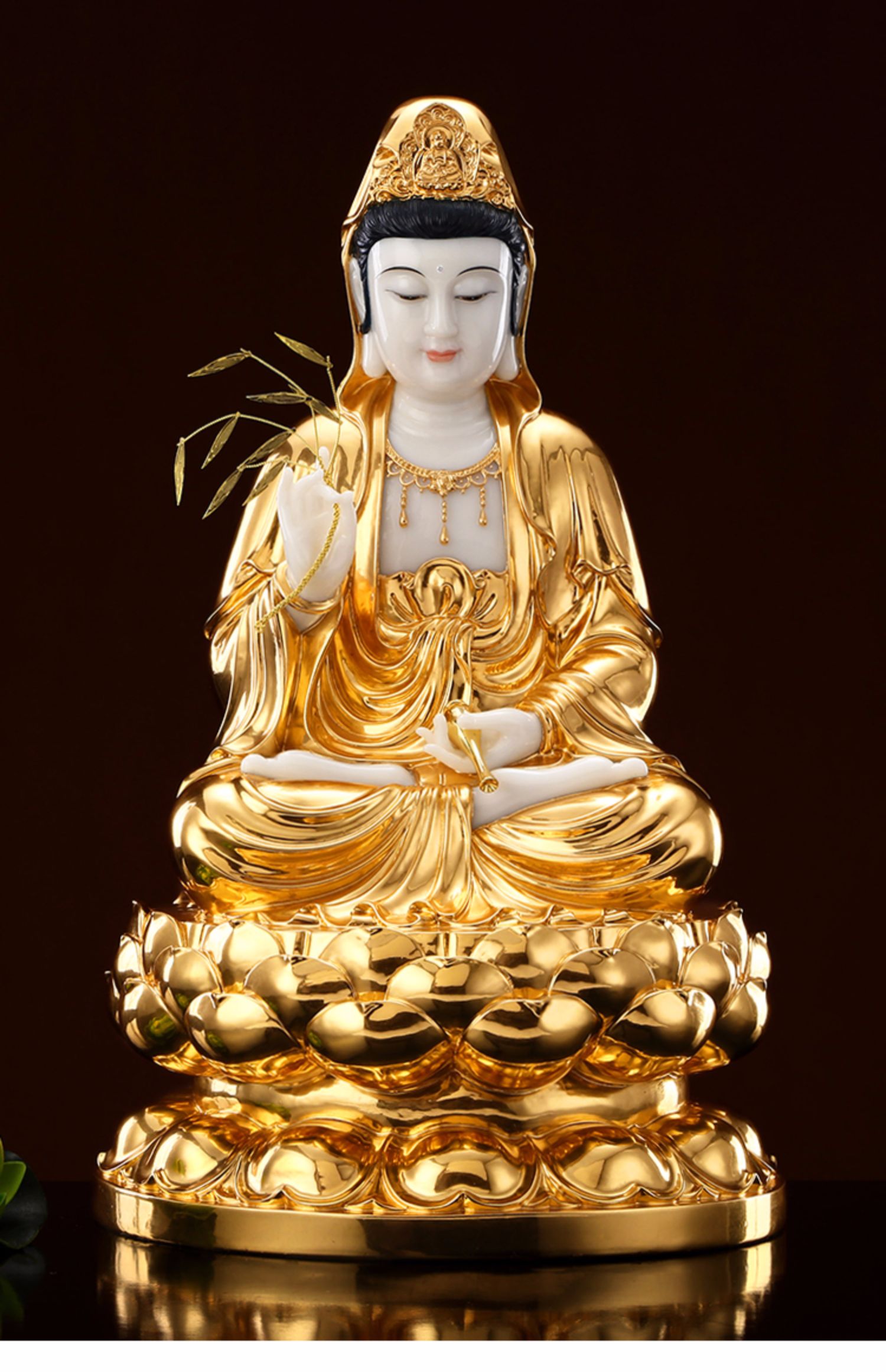 【上美】陶瓷16寸坐莲抱珠观世音菩萨观音佛像佛堂工艺品桌面摆件