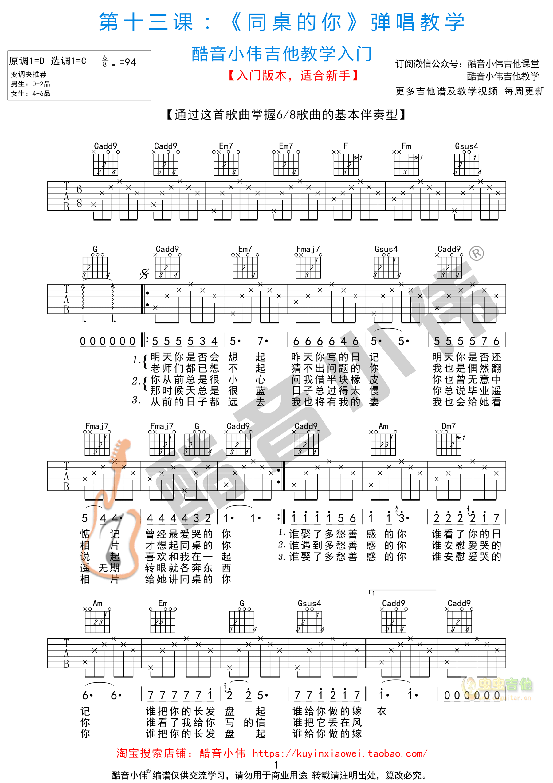 同桌的你简单版酷音小伟吉他教学