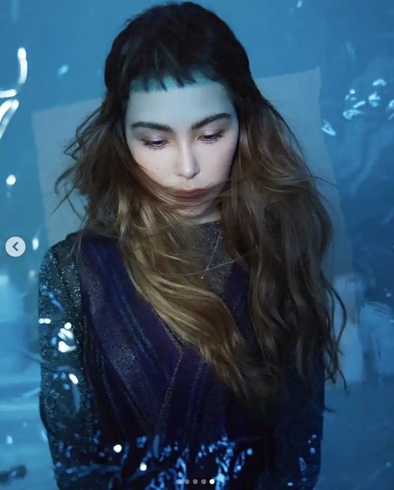 今天昆凌在ins晒出一组美照,其中几张昆凌戴上假发片,尝试短刘海造型