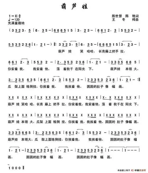 《葫芦娃》陈世慧作词 陈艳作词 王冬梅作曲 ,原创歌曲简谱,少儿歌曲