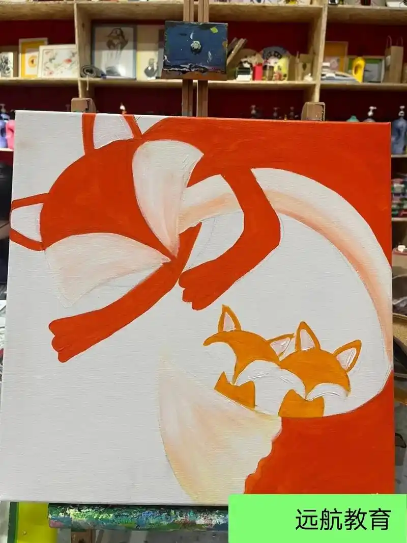 儿童水粉画一狐狸一家人作品适合6到9岁孩子,构图上打破了传 - 抖音