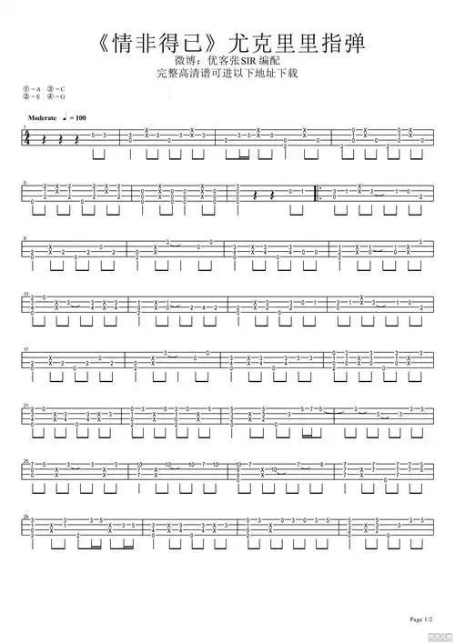 张sir版 庾澄庆《情非得已》尤克里里指弹谱