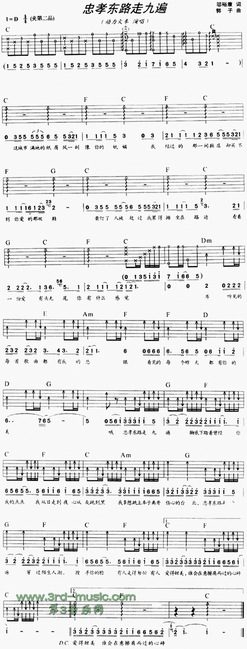 【忠孝东路走九遍吉他谱】忠孝东路走九遍吉他谱