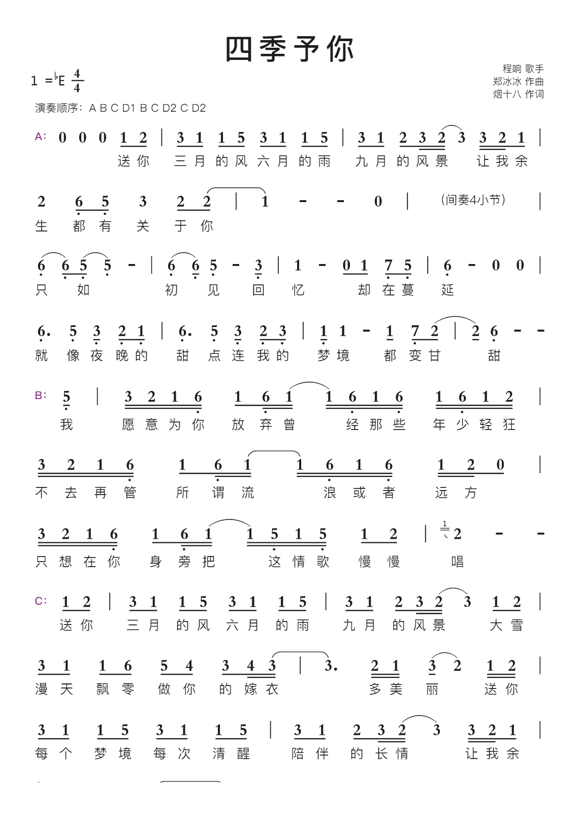四季予你智能简谱
