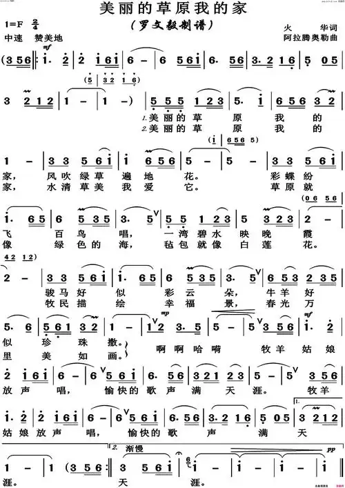 美丽的草原我的家(草原歌曲100首)简谱 - 曲谱歌词网