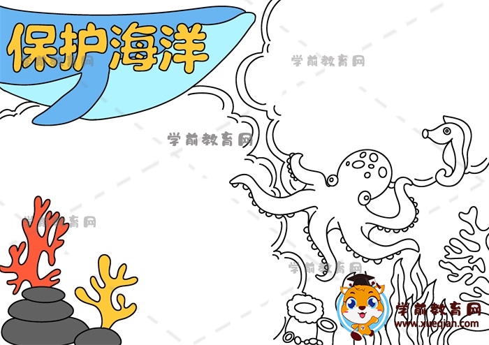 保护海洋手抄报简单画法教程,手把手教你画好看的保护海洋手抄报