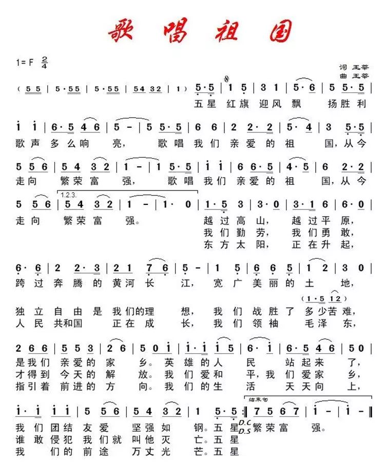 歌唱祖国_歌唱祖国简谱_歌唱祖国吉他谱_钢琴谱-查图片