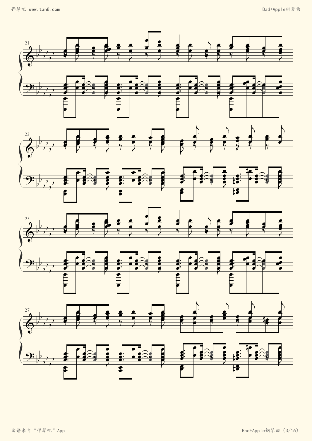 钢琴谱:bad apple(大师级)