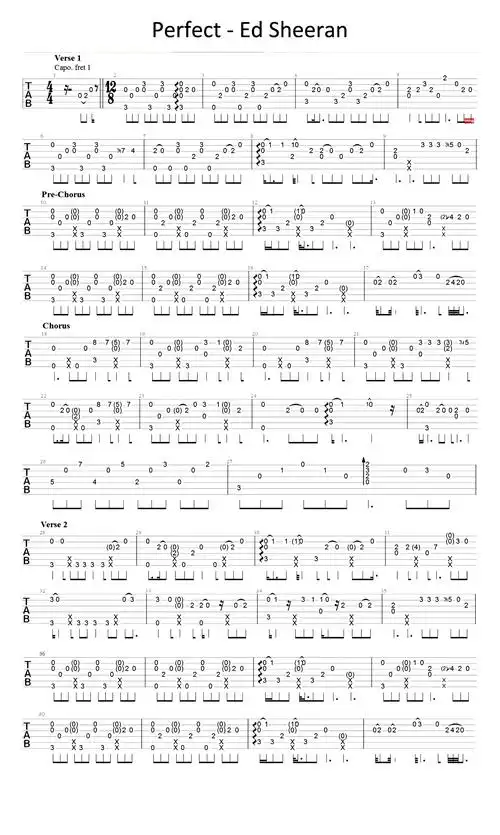 perfect指弹吉他谱 ed sheeran《perfect》指弹谱简单版