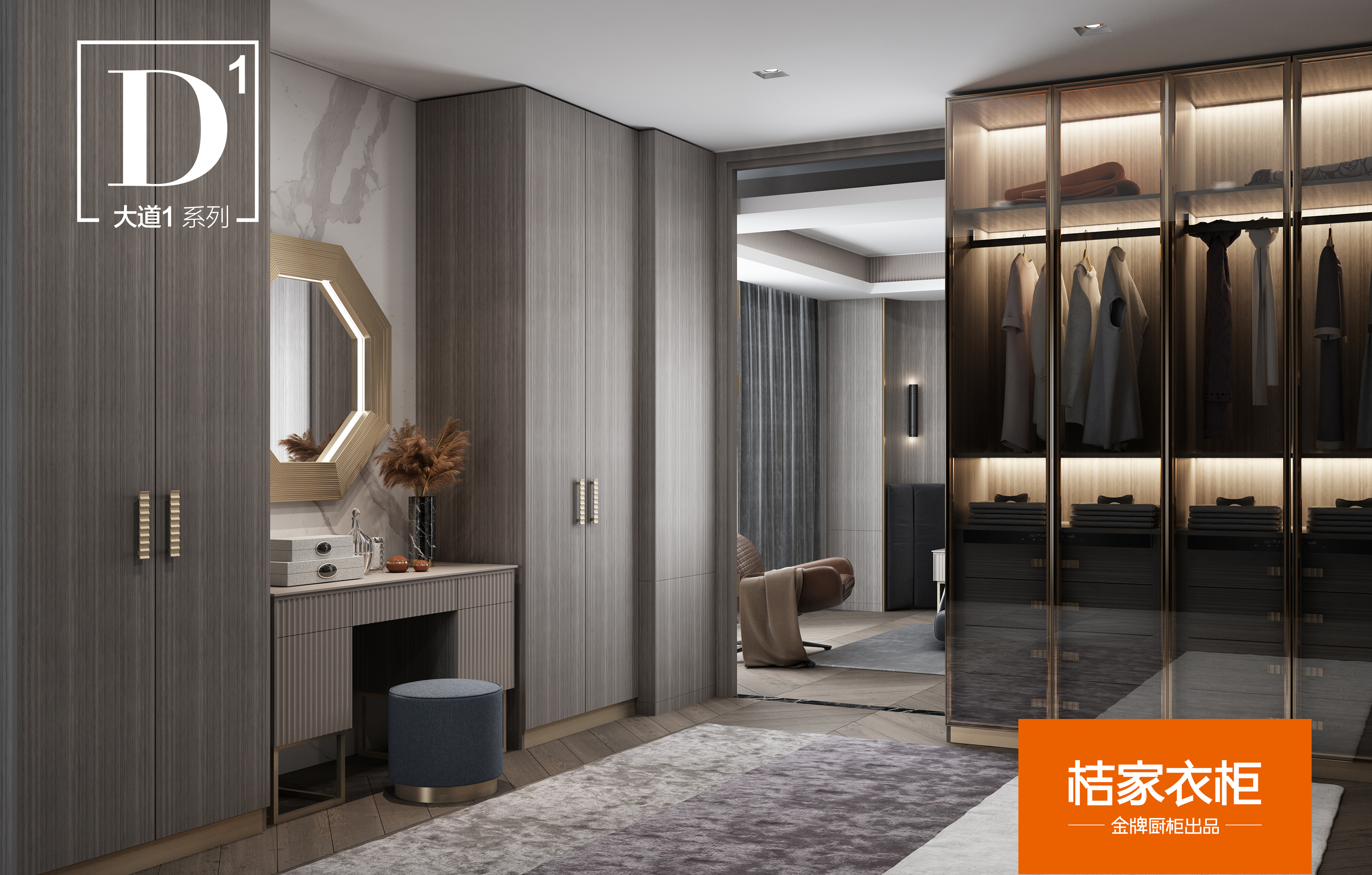 桔家衣柜采用j型隐藏式把手造型美观简约实用轻奢现代风