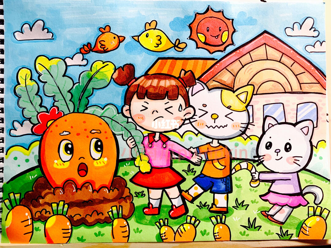 美术考编儿童画故事大王拔萝卜