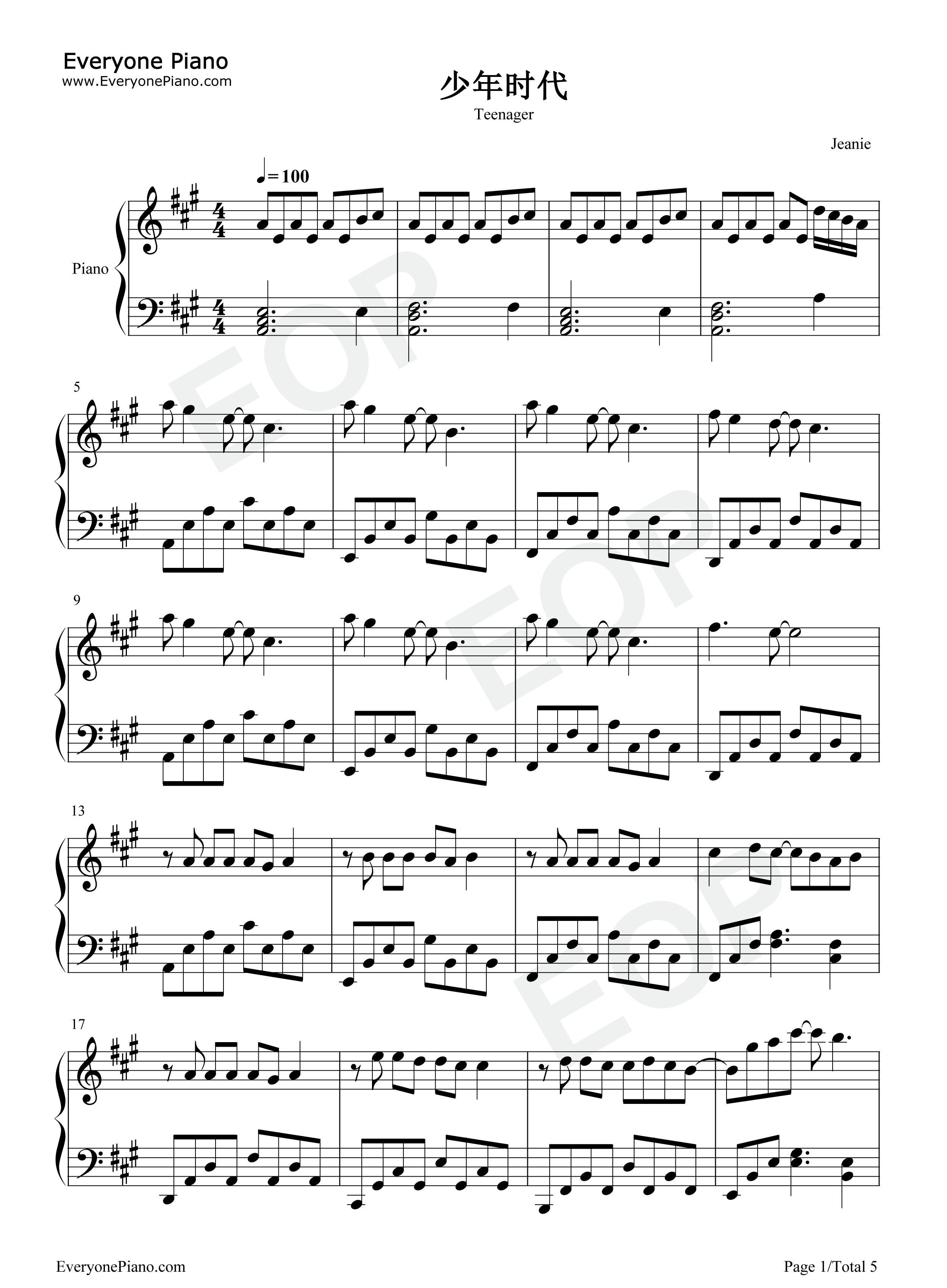 少年时代时代少年团五线谱预览1