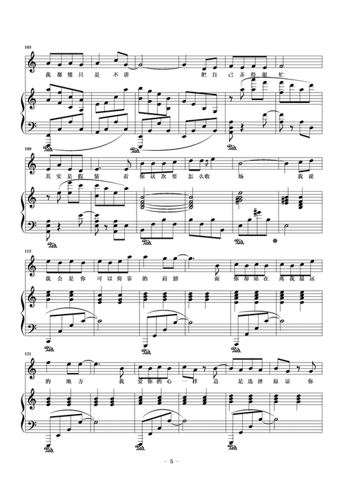 说谎 张信哲 钢琴谱,歌谱 简谱,五线谱