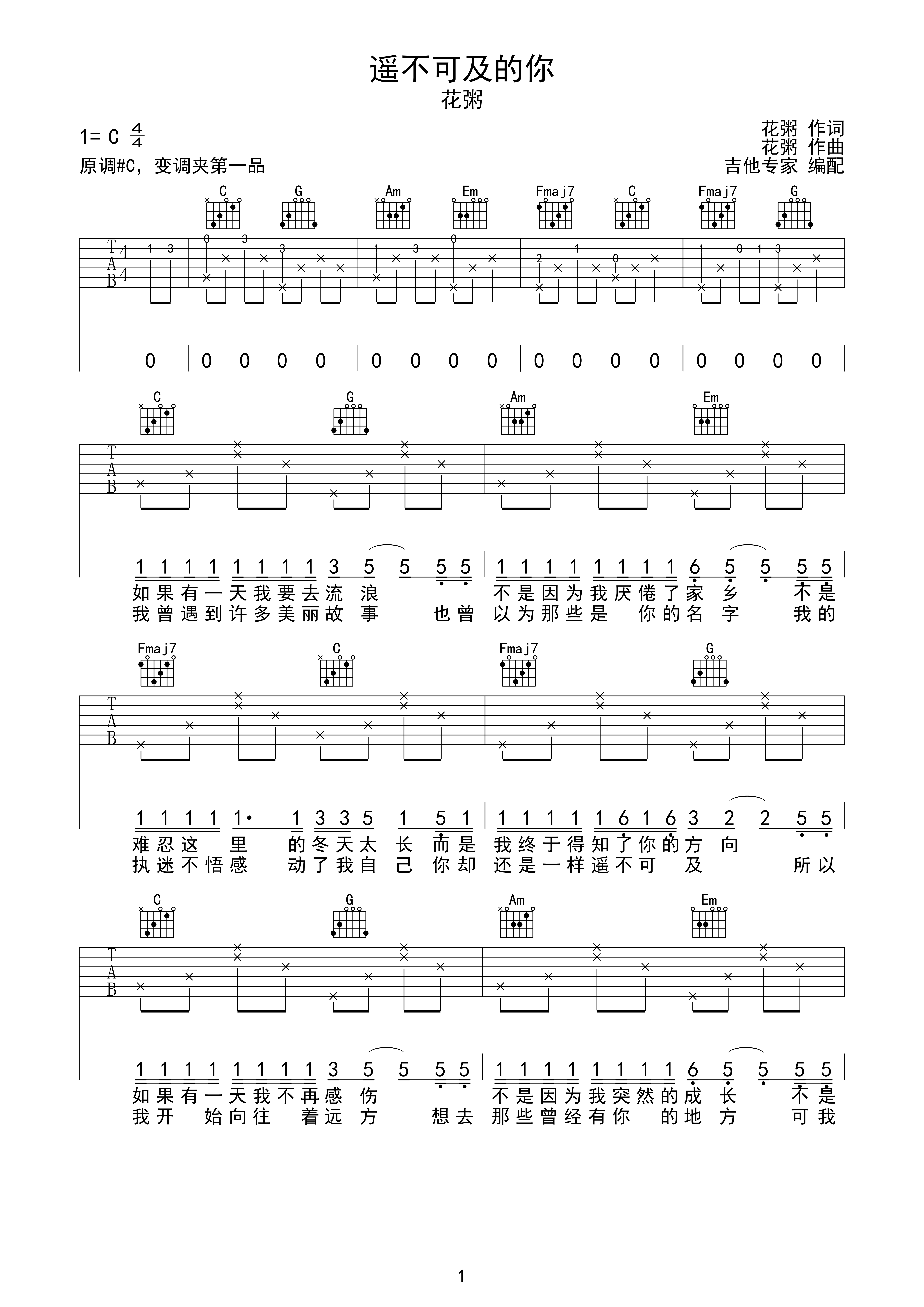遥不可及的你吉他谱 c调 花粥1