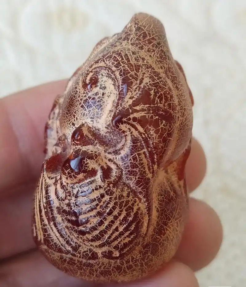 清代老琥珀冰裂纹三多吊坠【包老包真,假一赔十!】