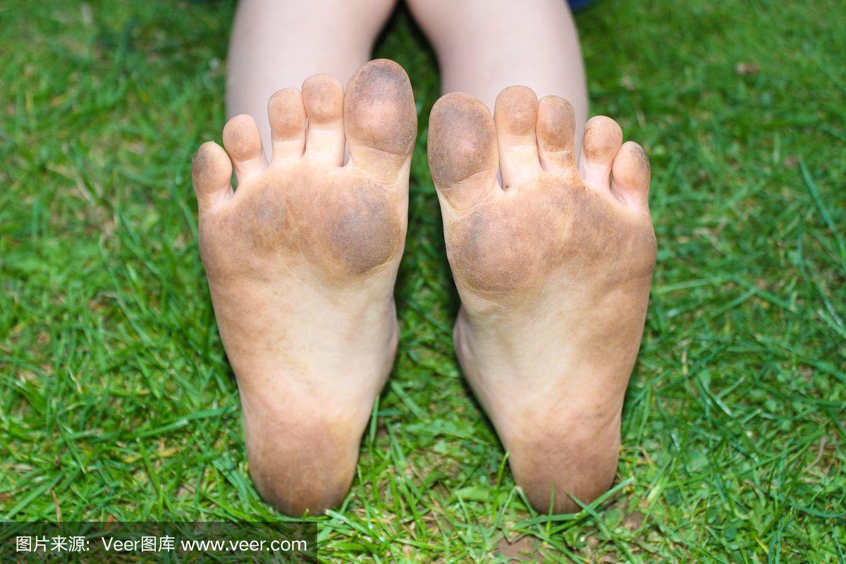脚, 儿童的, 黑色, 脏的, 赤脚的, 十, 孩子(feet, child"s, black