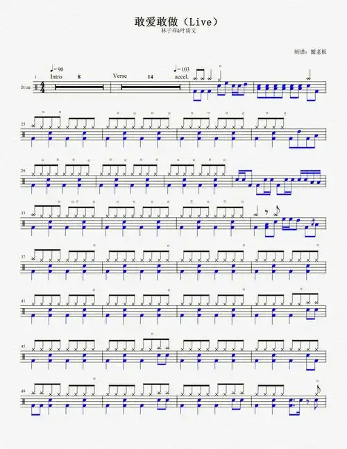 免费鼓谱分享敢爱敢做live09